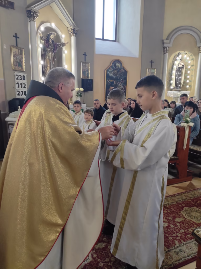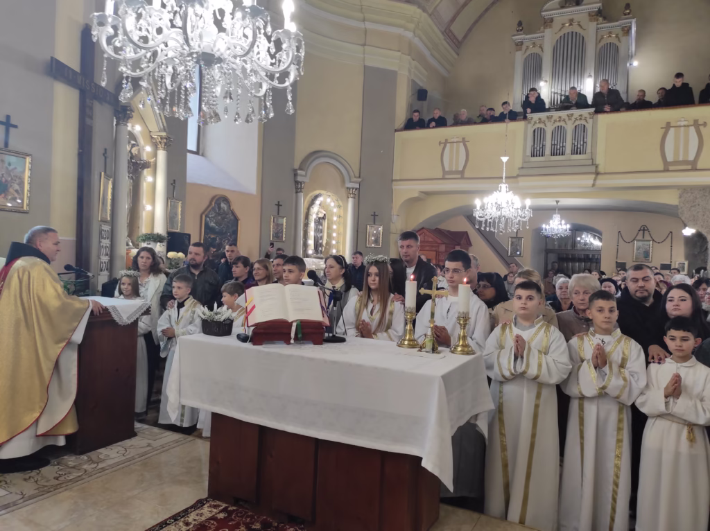 Október 26-án elsőáldozás volt a királyházi Szent Péter és Pál apostolok plébániatemplomban. Tíz gyermek és egy felnőtt elsőáldozásáért adhattunk hálát.