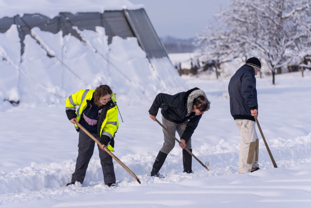 Ez a három intézmény a gyöngyösi alsóvárosi ferences templom kolostorépületében kapott helyet. A felnőttek ellátását biztosító lakóotthon ezzel szemben Karácsondon működik, Gyöngyöstől mintegy 12 kilométerre, az autista majorság területén, amely egyben a foglalkoztatás helyszíne is. Ide érkezünk látogatóba. Az utakat vastag, közel harminc centis hóréteg borítja. Ahogy közelítünk a Heves megyei település felé, egyre több helyen látni árokba csúszott, segítségre váró járműveket. Mindannyian érezzük, hogy bátor döntés volt útnak indulni, de minden nehézség ellenére épségben érkezünk meg Karácsondra; a látvány pedig, ami fogad minket, minden kellemetlenségért kárpótol. A táj teljesen fehérbe burkolózik, és hatalmas fóliasátrak körvonalai magasodnak sejtelmesen a birtok fölé. A jeges szél időnként felkapja a friss havat, és finom fátyolként sodorja végig a majorság fölött, miközben a napfény megcsillantja a levegőben kavargó szemcséket. Egészen olyan, mintha csillámpor hullana az égből – hosszú évek után a tél egy ritkán látott, szép arca mutatkozik meg.