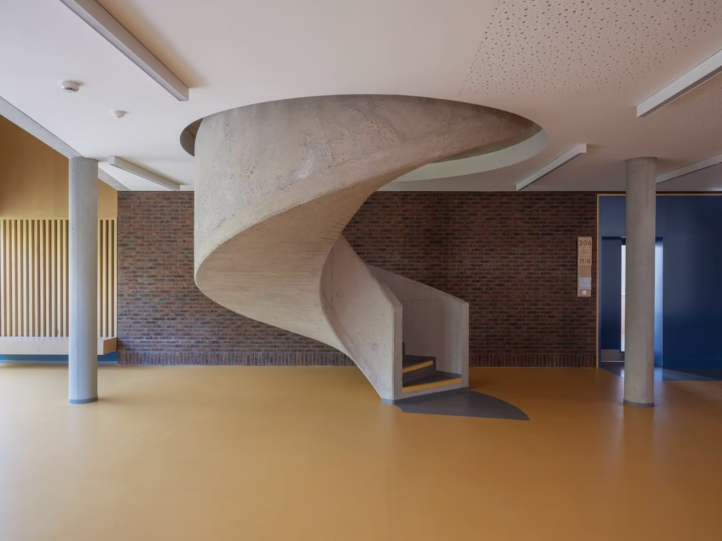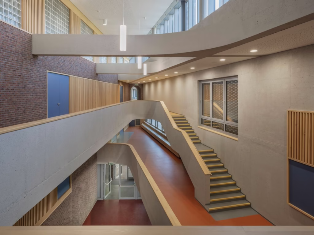 Az új épületszárnyban korszerű oktatási és közösségi terek kaptak helyet: tantermek, egy modern, osztható tornacsarnok, aula, konditerem, öltözők, valamint kiszolgáló helyiségek és egy mélygarázs is. Kiegészítésképpen az északi szárnyhoz egy központi lépcsőház is épült két lifttel. Az épület kialakítása során fontos szempont volt a funkcionalitás és az esztétikai illeszkedés a meglévő történeti környezethez. A klasszikus szerkezeti megoldásokat korszerű anyaghasználattal és gépészeti rendszerekkel ötvözték.