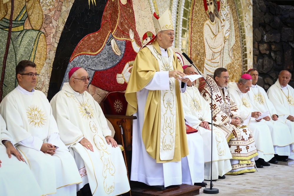 Majd így folytatta: a gyóntató udvarban, a penitenciakápolnában felállított szentföldi oltár nem várt módon összekapcsolja Keletet és Nyugatot. Felszentelésekor az üldözött keleti egyházak vezetőinek jelenlétében a szír katolikusok egyházi képviselője itt imádkozott az üldözöttekért, az üldözőkért, a Kelet békéjéért.