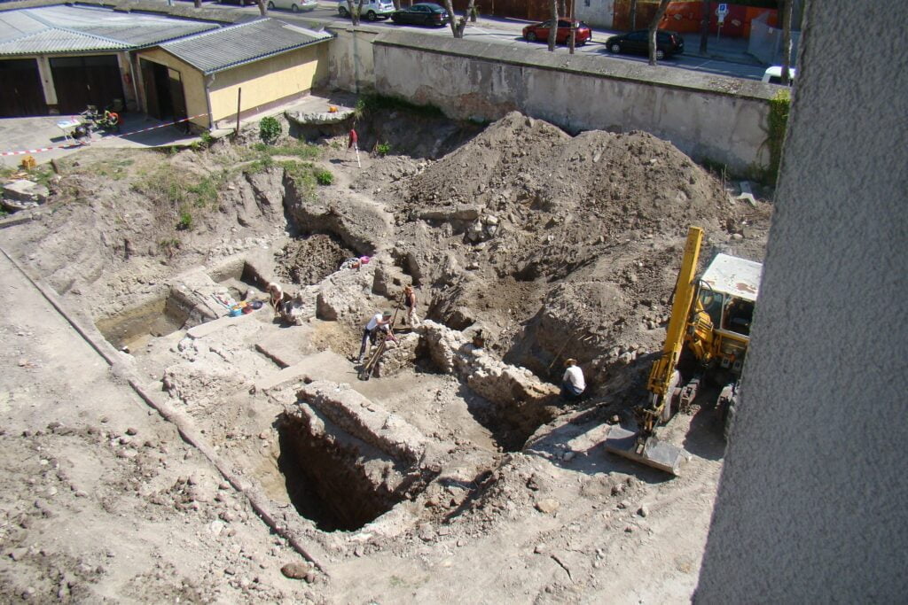A távoktatás idején sem állt le a munka az iskolában. Régészek dolgoznak a Franka udvarán – tették közzé a hírt az iskola facebook-oldalán.