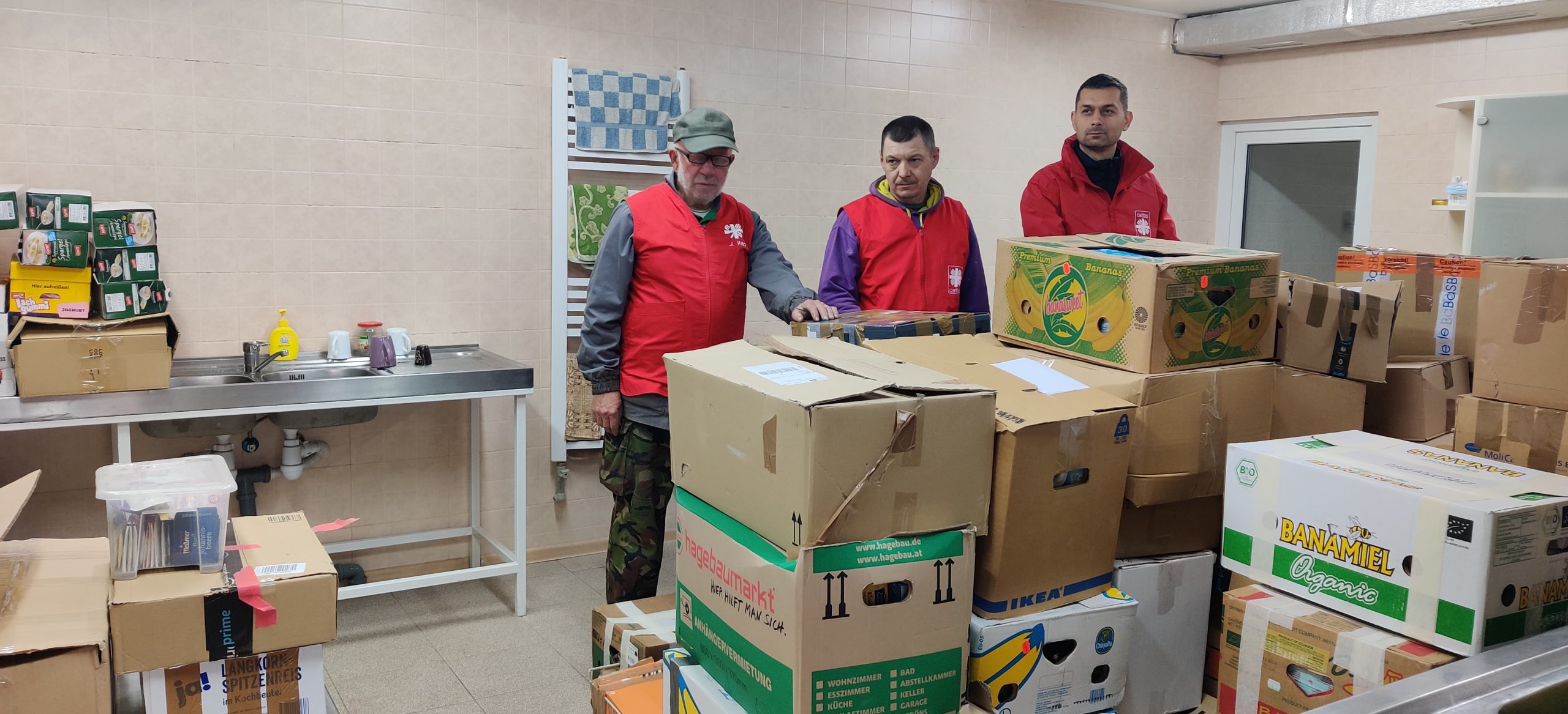 A Nagyszőlősi Szociális Karitatív Központ nagy mennyiségű egészségügyi adományt (kötszereket, gyógyszereket, ágytakarókat, polifoamokat) ajánlott fel a helyi gyűjtőpontra. Hála és köszönet a Ferences Alapítványnak, akik elsőként, gyors szervezéssel nagy mennyiségű adományt gyűjtöttek a részünkre, melyet itt, a központban rendszereztünk és a rászorulók (menekültek) számára eljuttattunk.
