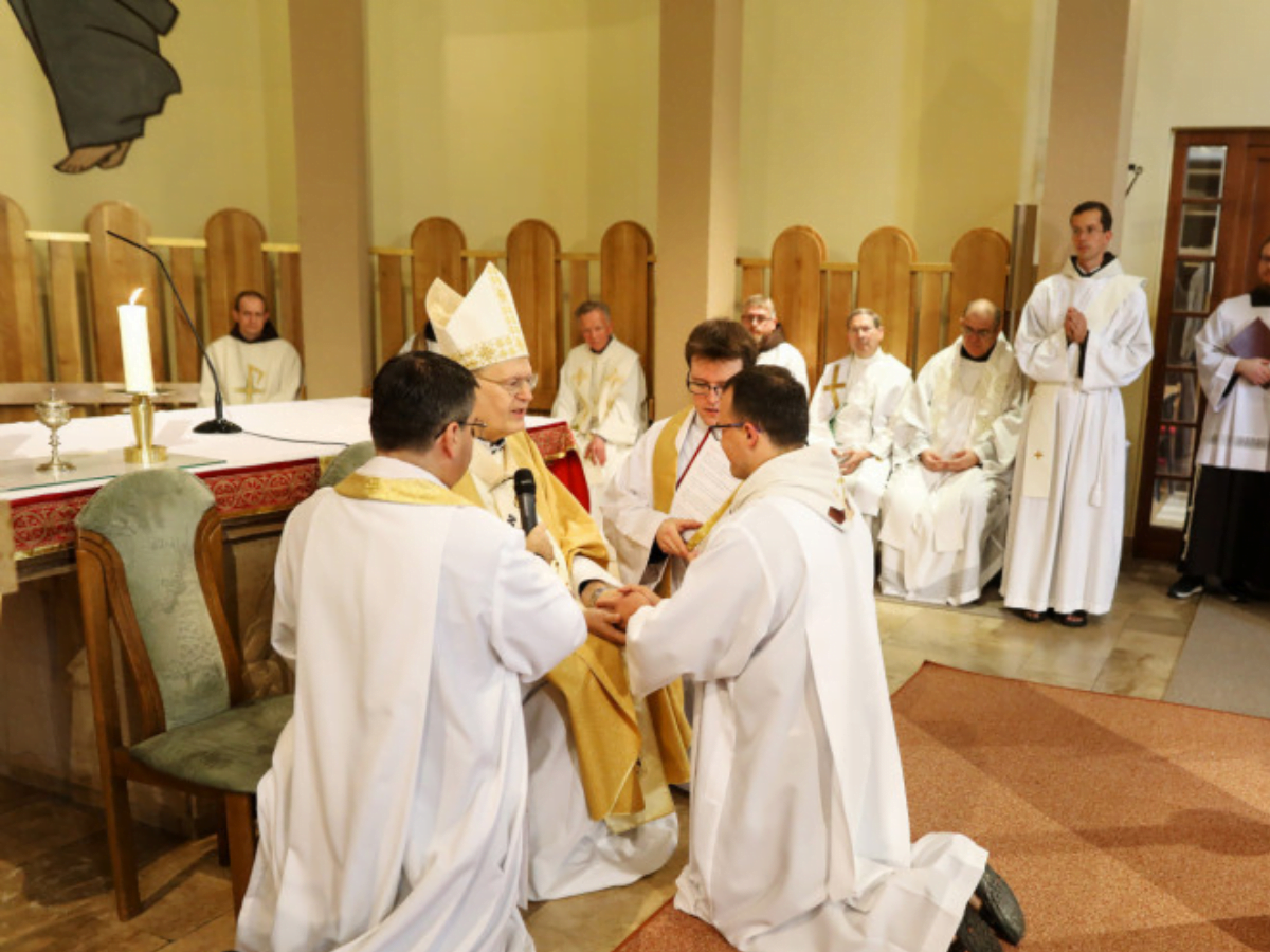 Erdő Péter bíboros, prímás június 4-én, szombaton a budapest-pasaréti Páduai Szent Antal-templomban Juhos Benjamin és Radványi Atanáz ferences szerzeteseket diakónussá, Balázs Jeromos ferences szerzetest pappá szentelte.