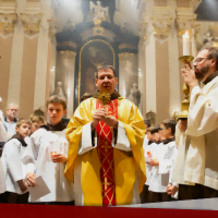 Az olvasmány Sirák fia könyvéből hangzott el arról a férfiról, aki megjavíttatta és megerősítette Isten templomát. „Milyen dicső volt! Mint a hajnalcsillag a fellegek fölött.” A szentlecke Szent Pál apostol Galata leveléből buzdított, hogy Urunk Jézus Krisztus keresztjével dicsekedjünk. Az evangélium Szent Máté könyvéből a kicsinyeknek való kinyilatkoztatásról szólt. „Gyertek hozzám, akik terhet hordoztok, én megkönnyítelek titeket – biztat Jézus, hiszen – az én igám édes, az én terhem könnyű.”